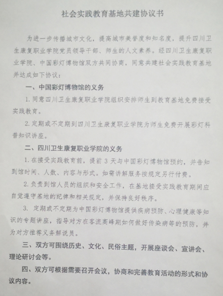 与四川卫生康复职业学院签定社会实践教育基地共建协议