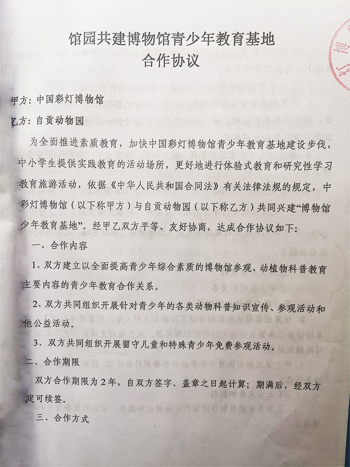 与自贡动物园共建青少年教育基地合作协议