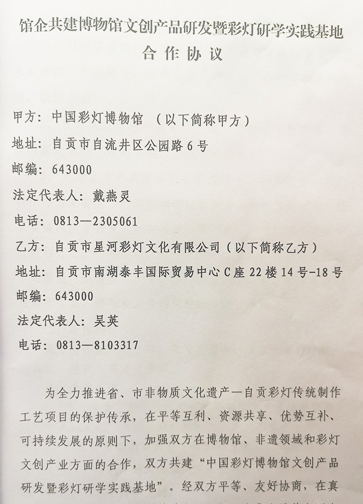 与自贡市星河彩灯文化有限公司签订馆企共建彩灯研学实践基地